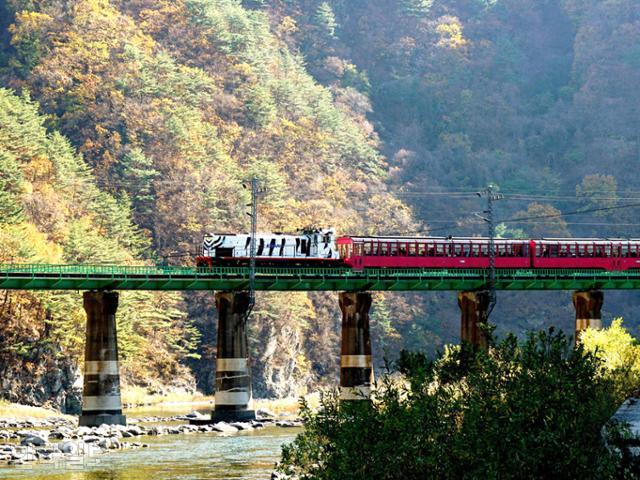 1955년 개통된 영암선(영주~철암) 철도는 차로는 가기 어려운 봉화의 산골 마을을 차례로 통과한다. 여행의 시작은 분천역이다. 백두대간협곡열차 덕분에 산타마을로 변신한 역이다. 이 관광열차는 하루 2회(수~일요일 운행) 분천역~철암역 구간을 왕복한다. 산과 강을 넘나들며 태백산 자락과 낙동강 상류의 비경 속을 달린다. 강릉에서 출발하는 동해산타열차(수~일 운행), 동대구에서 출발하는 경북나드리열차(토ㆍ일 운행)도 분천역이 종착역이다.
