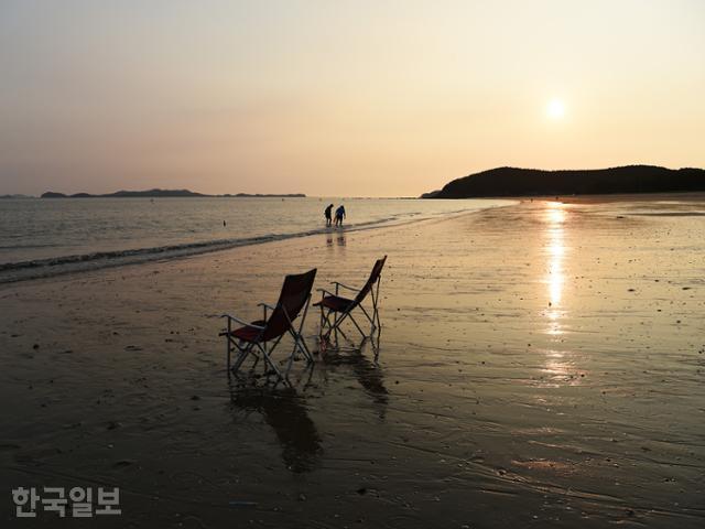 원산도해수욕장은 가운데 작은 봉우리를 사이에 두고 1.8㎞ 뻗어 있다. 섬의 규모에 비해 길기도 하지만 물이 빠지면 모래사장이 드넓게 펼쳐진다. 바닷물이 얇게 번지는 해변을 걷는 것도 낭만적이다. 모래는 한없이 고와 한 움큼 잡으면 손가락 사이로 솔솔 빠져나갈 정도다. 해변에 모래 다음으로 흔한 게 조개껍데기다. 운이 좋으면 살아 있는 조개를 주울 수도 있다.
